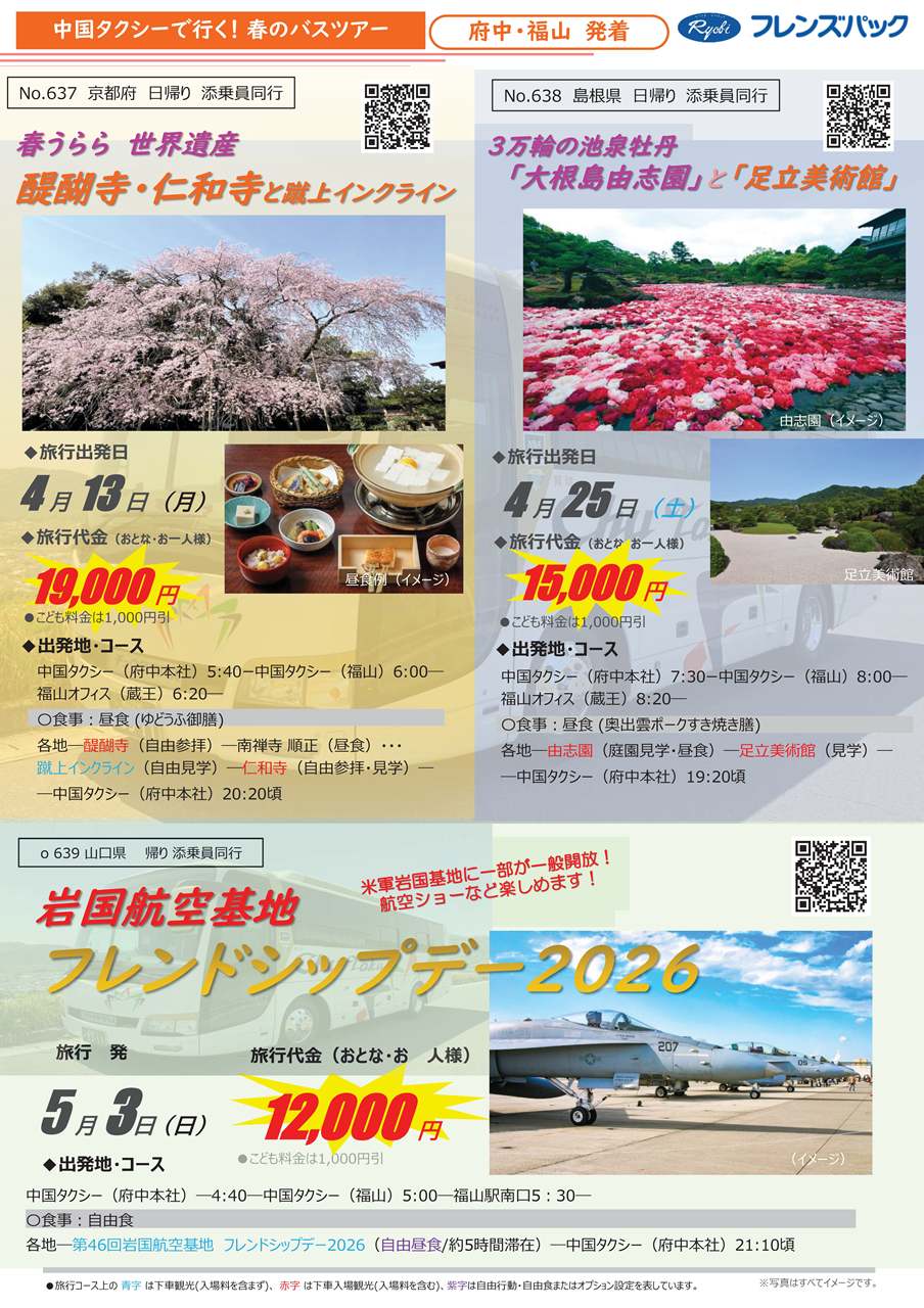 令和8年 春の桜巡り・花めぐりで四季を感じるバスツアー🌸🌷🚌販売開始